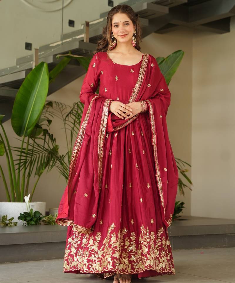 | Product Name | Maroon Kurti With Duptta In Chinnon With Embroidery Zari Sequins Work | |