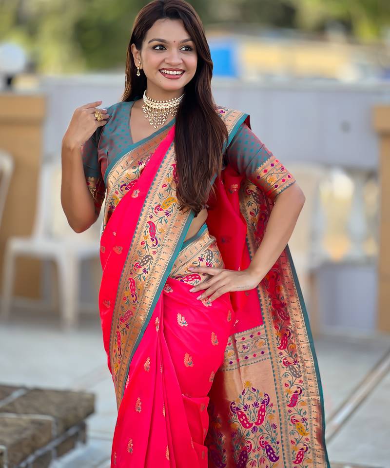 | Product Description | Soft Paithani Silk Saree With Meenakari Weawing Design And Rich Meenakari Weawing Pallu With Zari Weawing Border & Tessels Attach At Pallu End , Silk Weawing Blouse Piece |