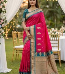 | • | Saree | : | Color- Pink / Fabric- Faux Banarasi |