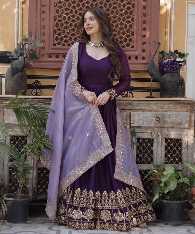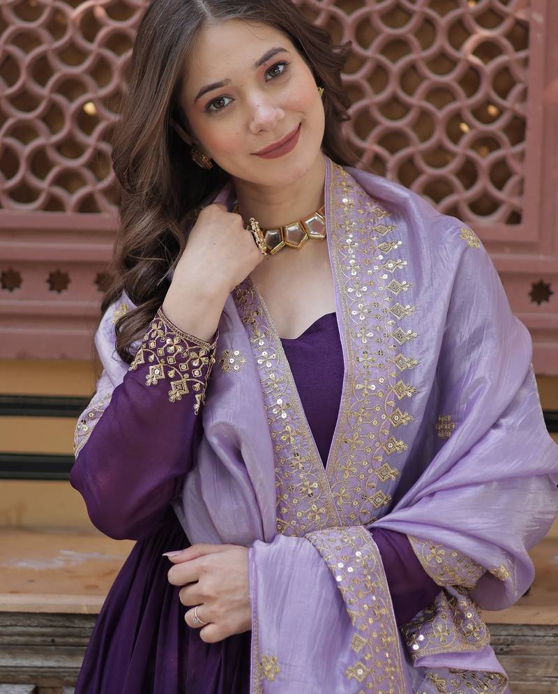 | Product Name | Purple Faux Blooming Georgette With Rich Sequins Multi Embroidered Gown With Dupatta | |