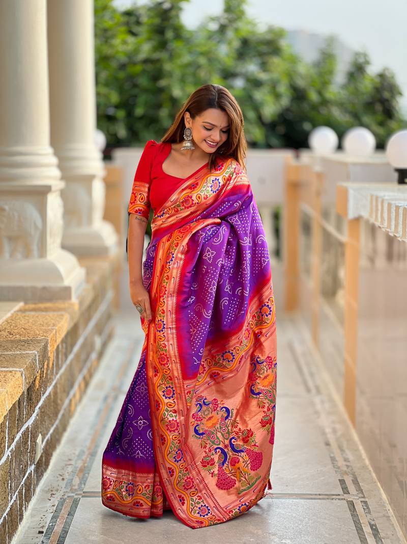 | Product Name | Purple Silk Blend Saree With Paithani Weaved Pallu And Blouse | |