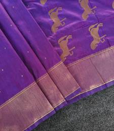Purple silk blend zari banarasi weaving saree with blouse