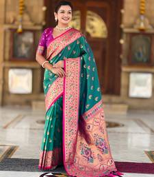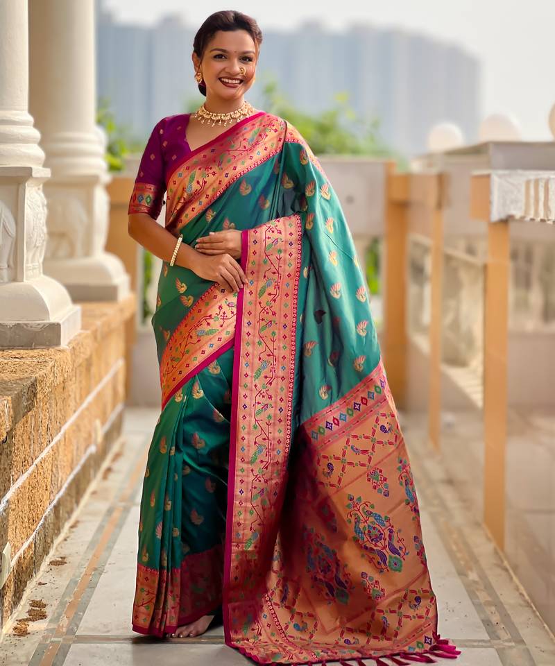 Sea green faux banarasi silk blend saree with paithani rich weaved pallu and blouse