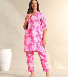 | Product Description | Infuse Your Collection With A Burst Of Color With The Mishti Set, Featuring A Radiant Magenta And White Botanical Outline Usp. This Contemporary Coordinated Ensemble Is Rendered In A Vivid Pink Hue And Is Decorated With Large Scale White Floral Silhouettes And Leaf Outlines That Create A High Contrast, Energetic Look. The Top Is Designed With A Refined White Lace Trimmed V Neckline Featuring A Central Pleat And Pearl Style Button Accents, Offering A Feminine And Polished Silhouette. Paired With Matching Printed Trousers, This Set Provides A Cohesive, Fashion Forward Ethnic Look That Is Perfect For Summer Festivities. |