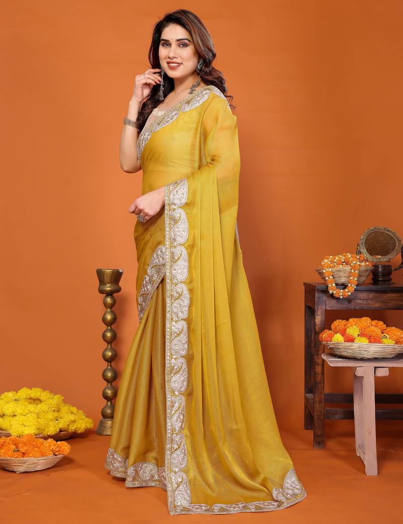 | Product Name | Yellow Mannequin Embroidery Work Saree | |