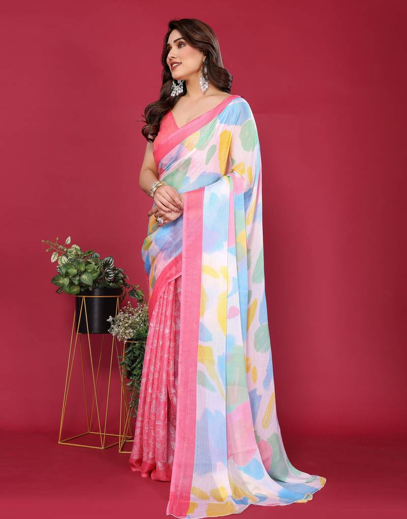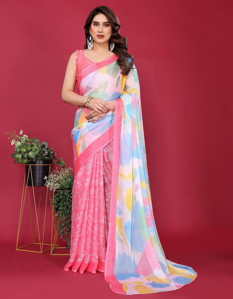 | • | Saree | : | Color- Pink / Fabric- Chiffon |