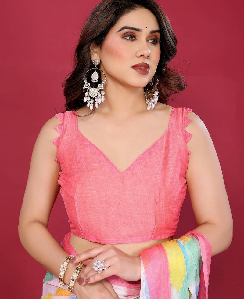 | • | Blouse | : | Color- Pink / Fabric- Chiffon |