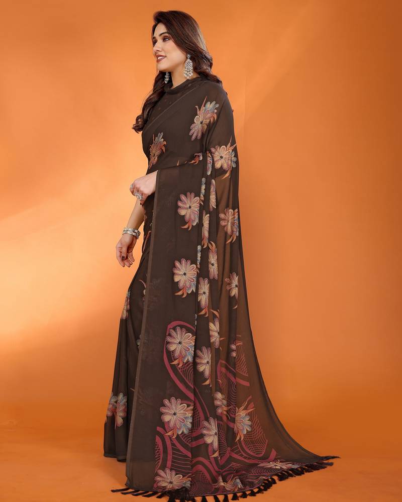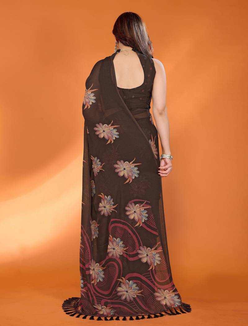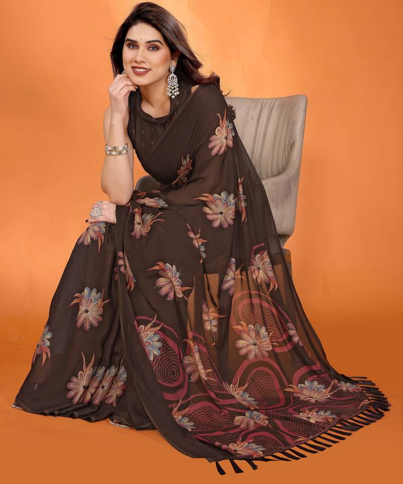 | • | Saree | : | Color- Brown / Fabric- Georgette |