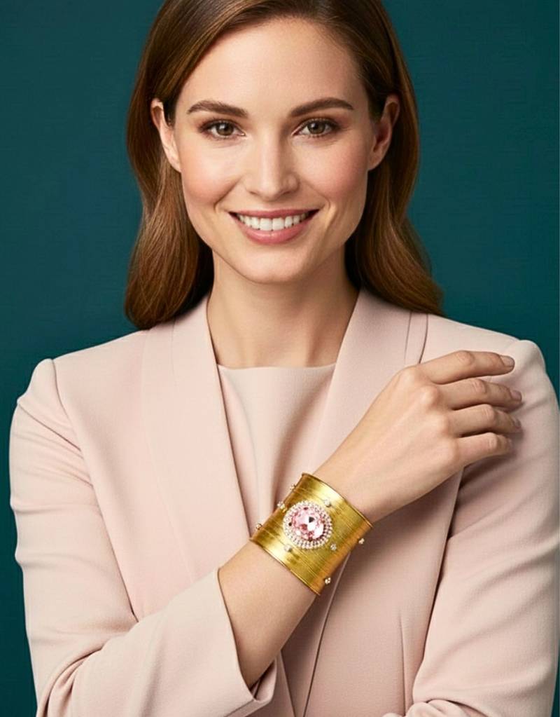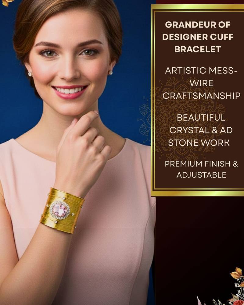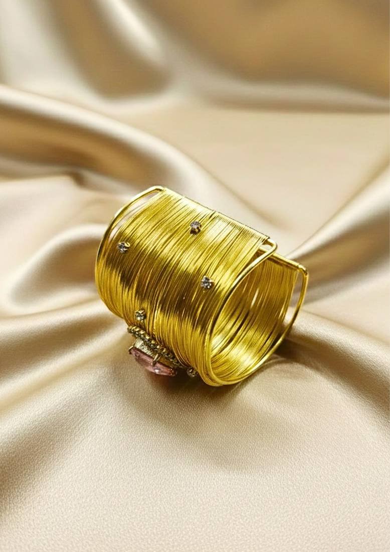 | Product Description | Combo Of Two Gold Plated Mess Wire Cuff Bracelet Adorned With A Floral Pattern With Dazzling Dazzling Pink Korean Cz Shiny Glass Crystal Stone. Its Intricate Wire Design And Bold Centerpiece Exude Elegance And Sophistication. Lightweight, Adjustable, And Perfect For Elevating Both Casual And Festive Looks. A Timeless Statement Piece For Every Jewelry Lover. |