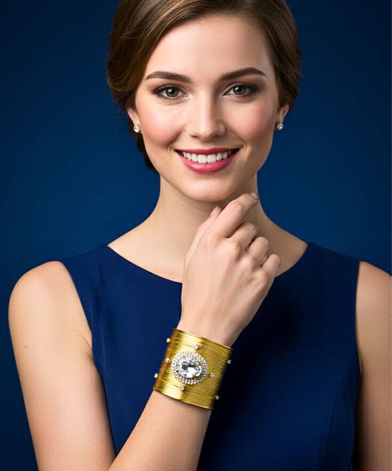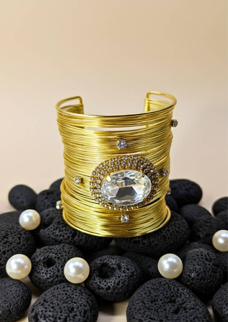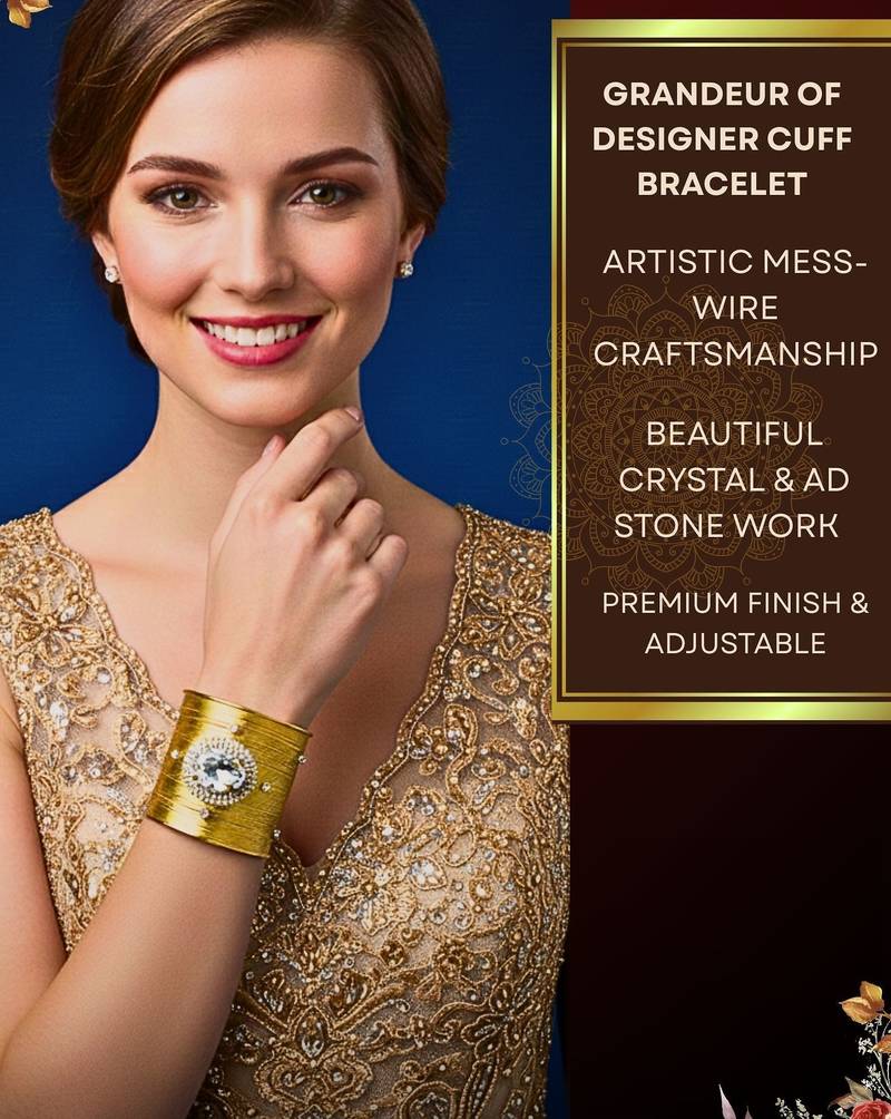 | Product Description | Combo Of Two Gold Plated Mess Wire Cuff Bracelet Adorned With A Floral Pattern With Dazzling Dazzling White Korean Cz Shiny Glass Crystal Stone. Its Intricate Wire Design And Bold Centerpiece Exude Elegance And Sophistication. Lightweight, Adjustable, And Perfect For Elevating Both Casual And Festive Looks. A Timeless Statement Piece For Every Jewelry Lover. |
