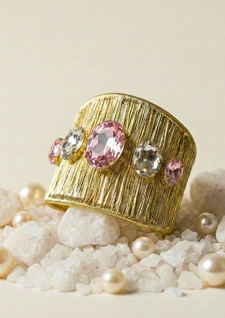 | Product Description | Combo Of Two Gold Plated Mess Wire Cuff Bracelet Adorned With A Dazzling Big Pink Korean Cz Shiny Glass Crystal Stone.Its A Lightweight, Adjustable, And Perfect For Elevating Both Casual And Festive Looks. A Timeless Statement Piece For Every Jewelry Lover. |
