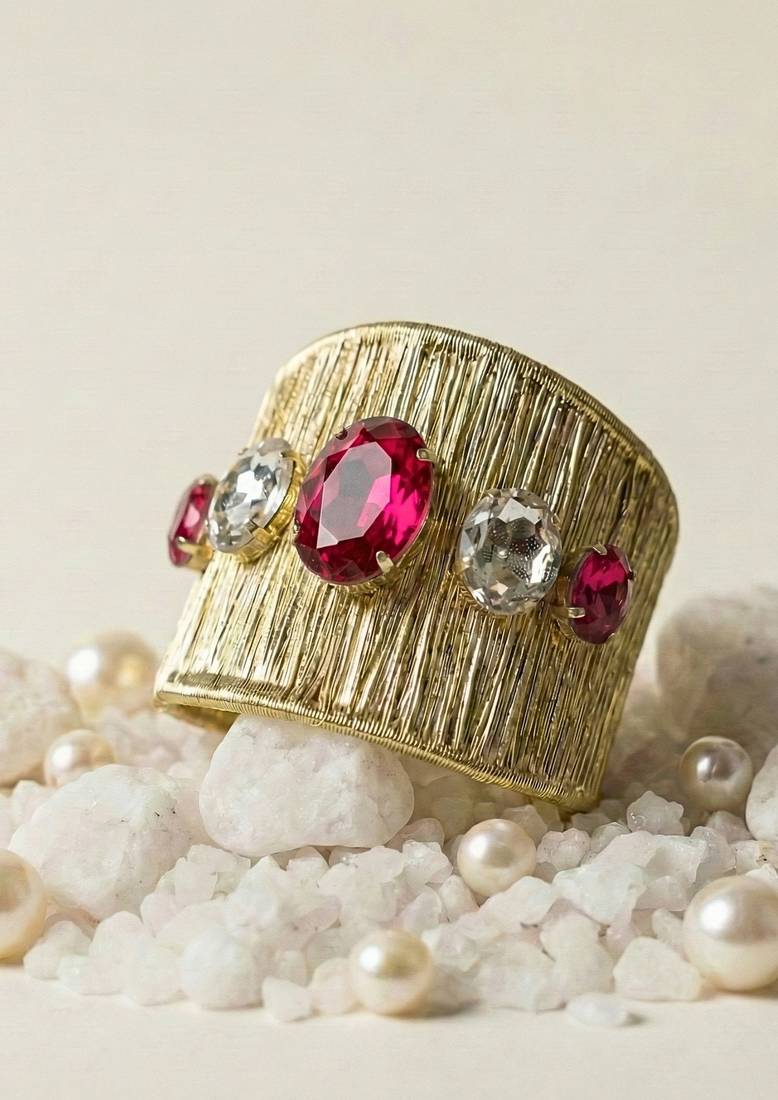 | Product Name | Gold Plated Combo Of Two Red Crystal Cz Ad Stone Western Cuff Bracelets Bangle | |