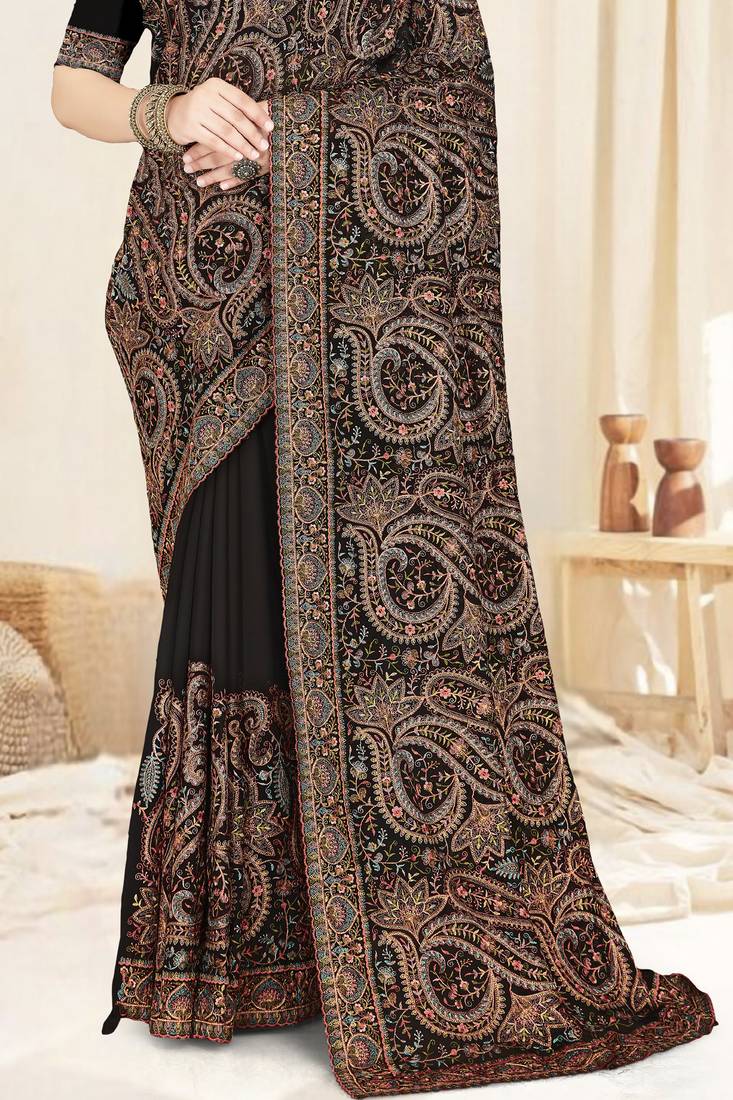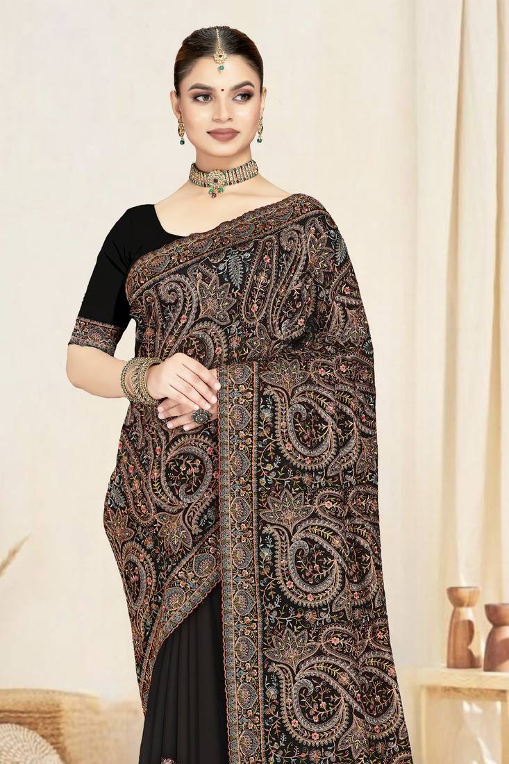 | Product Name | Black Designer Saree With Kashmiri Resham Embroidery | |