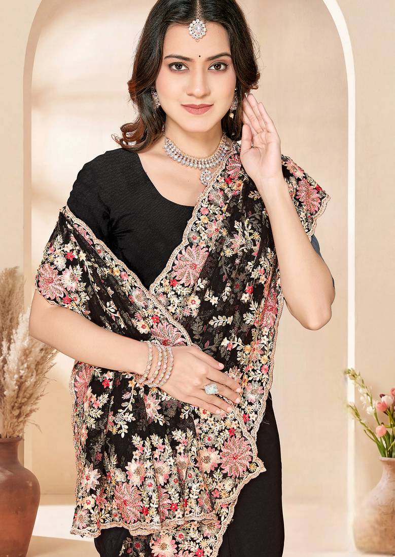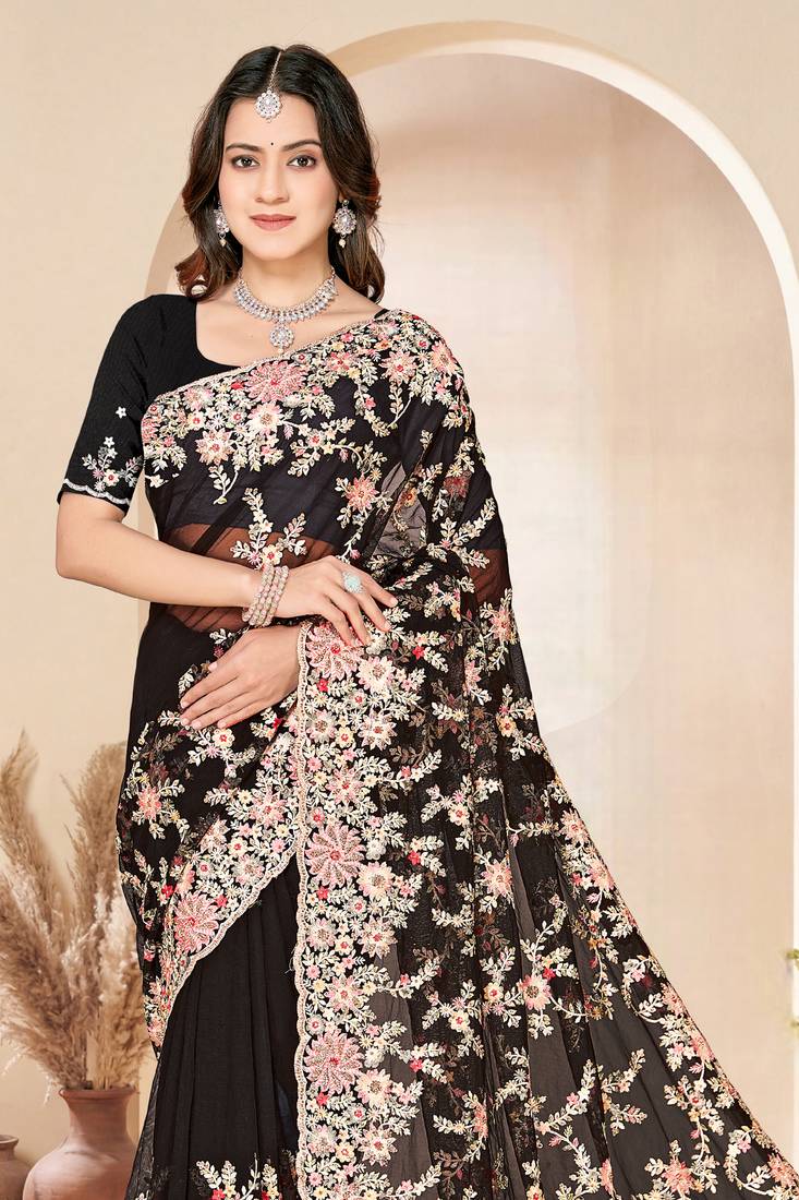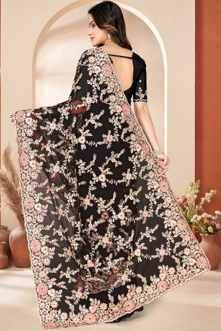 | Product Name | Black Sequin Zari Resham Embroidery Work Net Saree Sari For Women | |