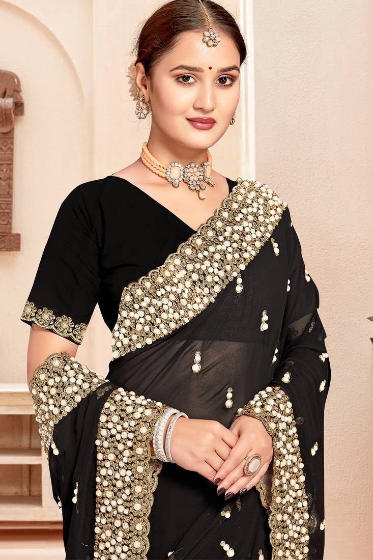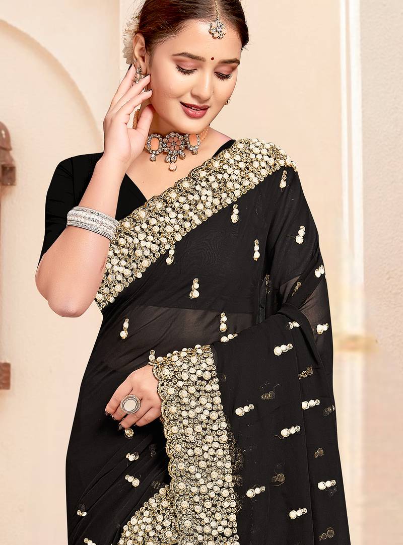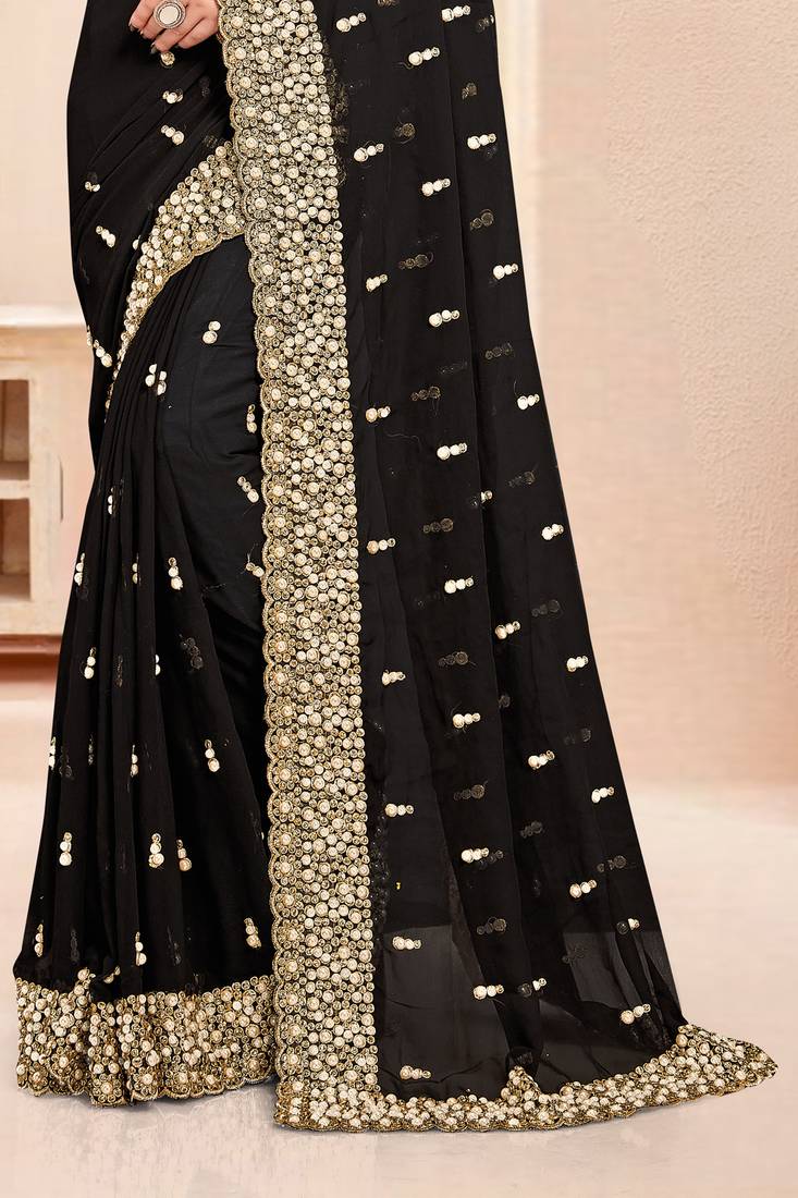 | Product Name | Black Sequin Zari Resham Moti Stone Border Georgette Designer Saree For Women | |