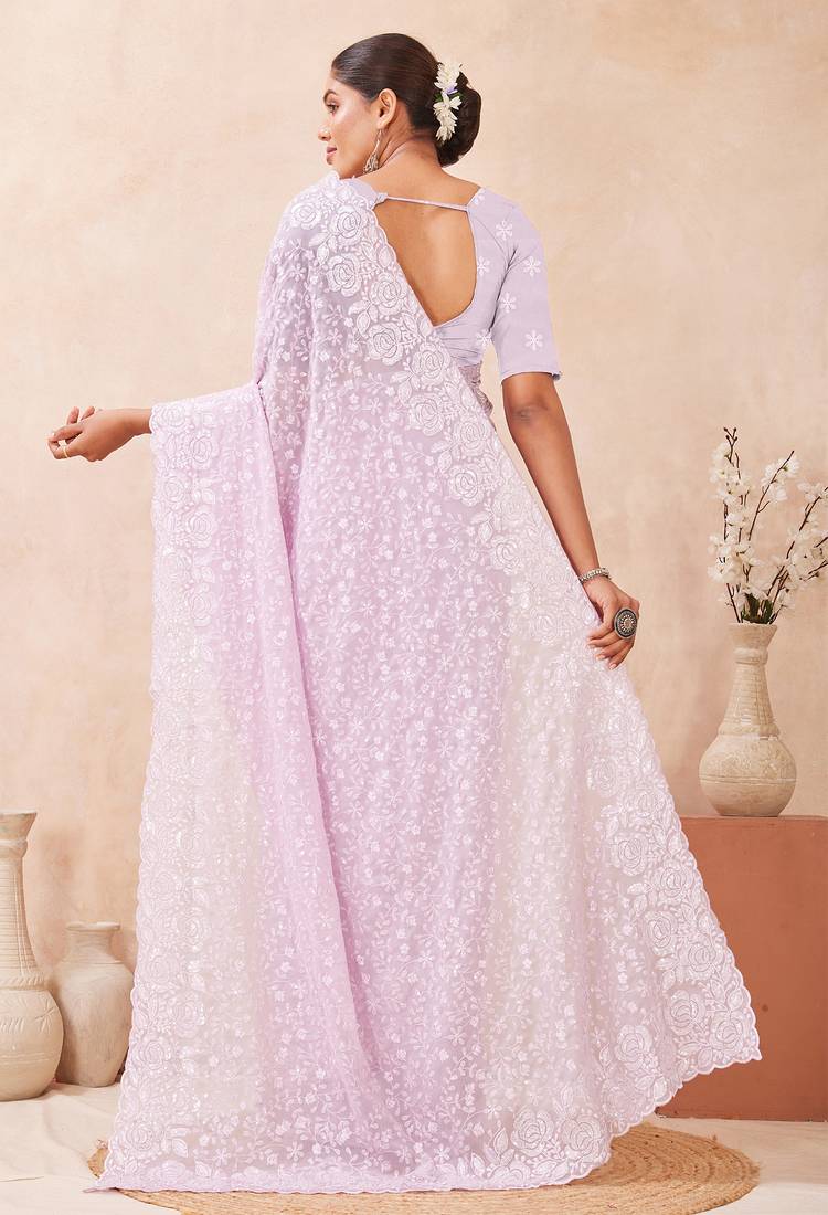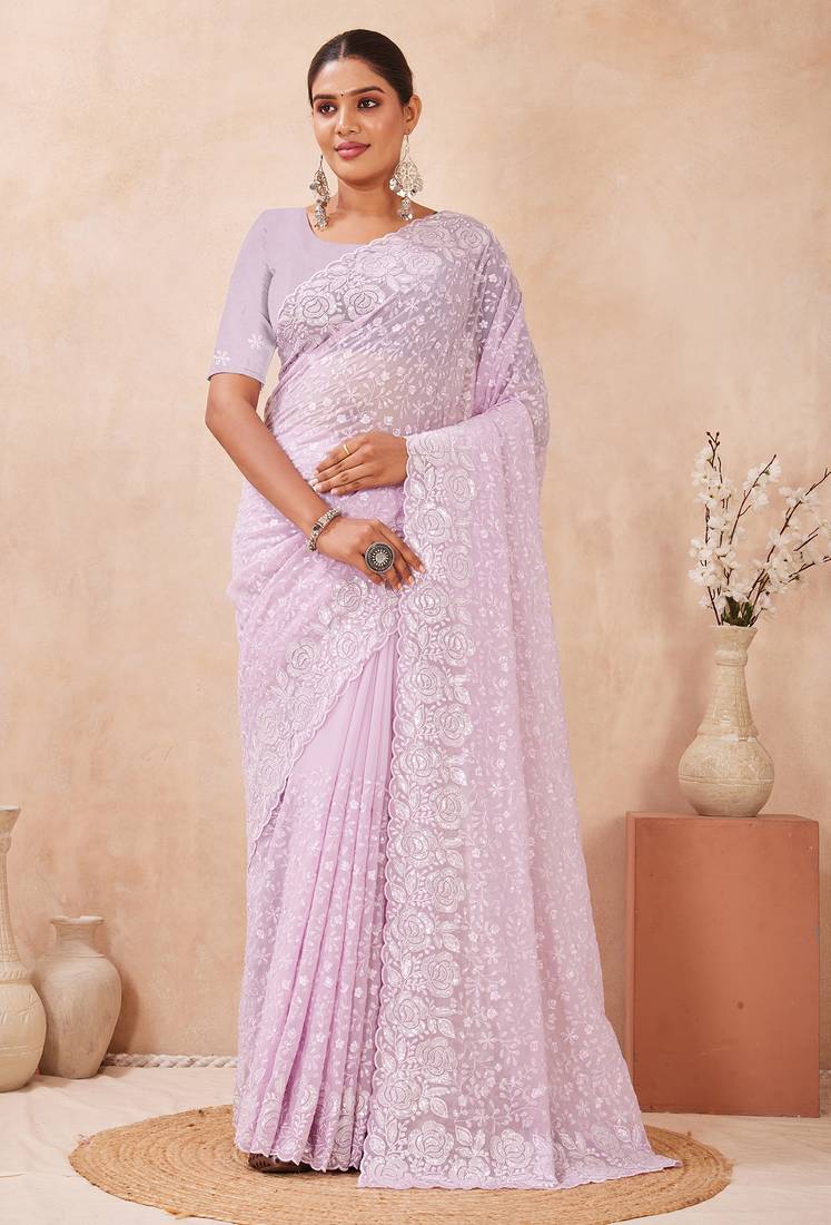 | Product Name | Lavender Georgette Saree With Zari Resham Sequin Work | |