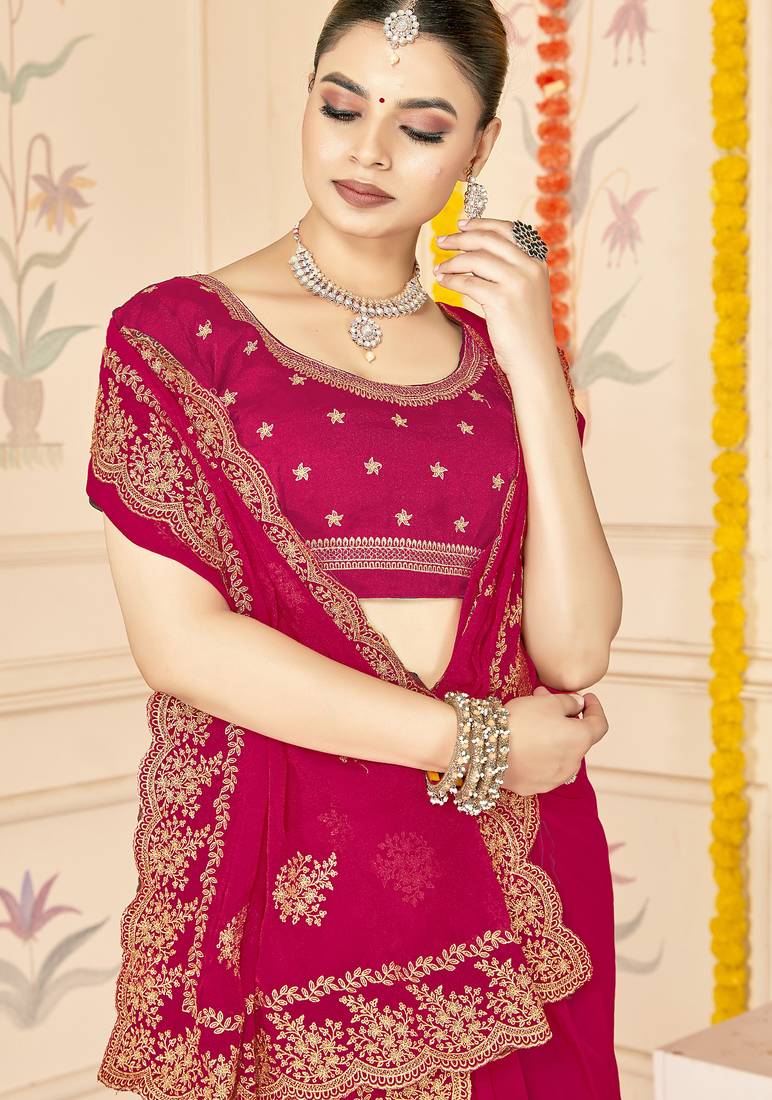Product Name Magenta Zari Embroidered Sequin Work Moss Silk Party Wear Saree