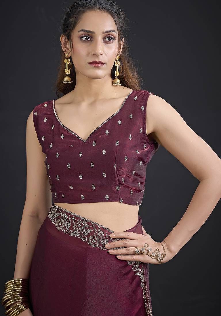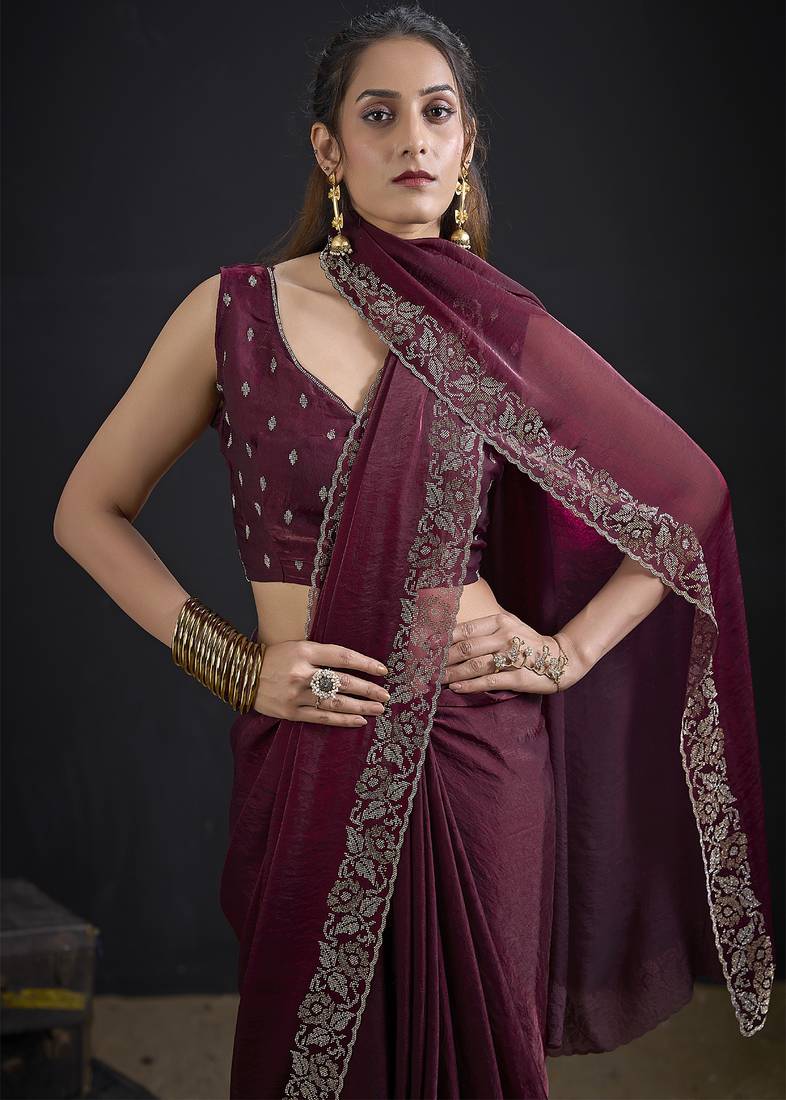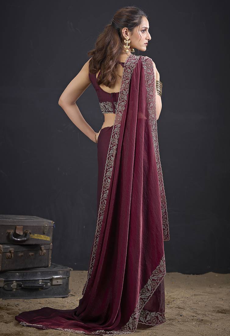 | • | Saree | : | Color- Maroon / Fabric- Satin |