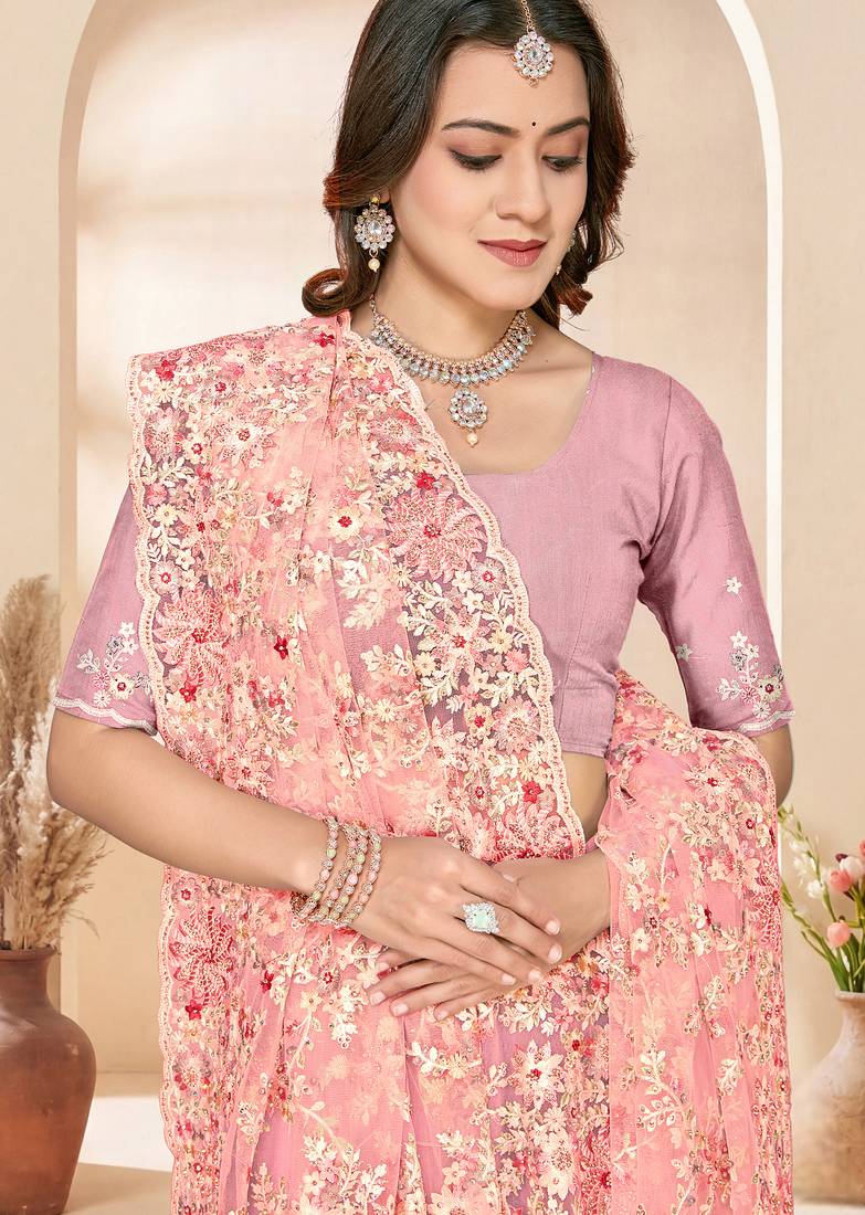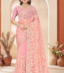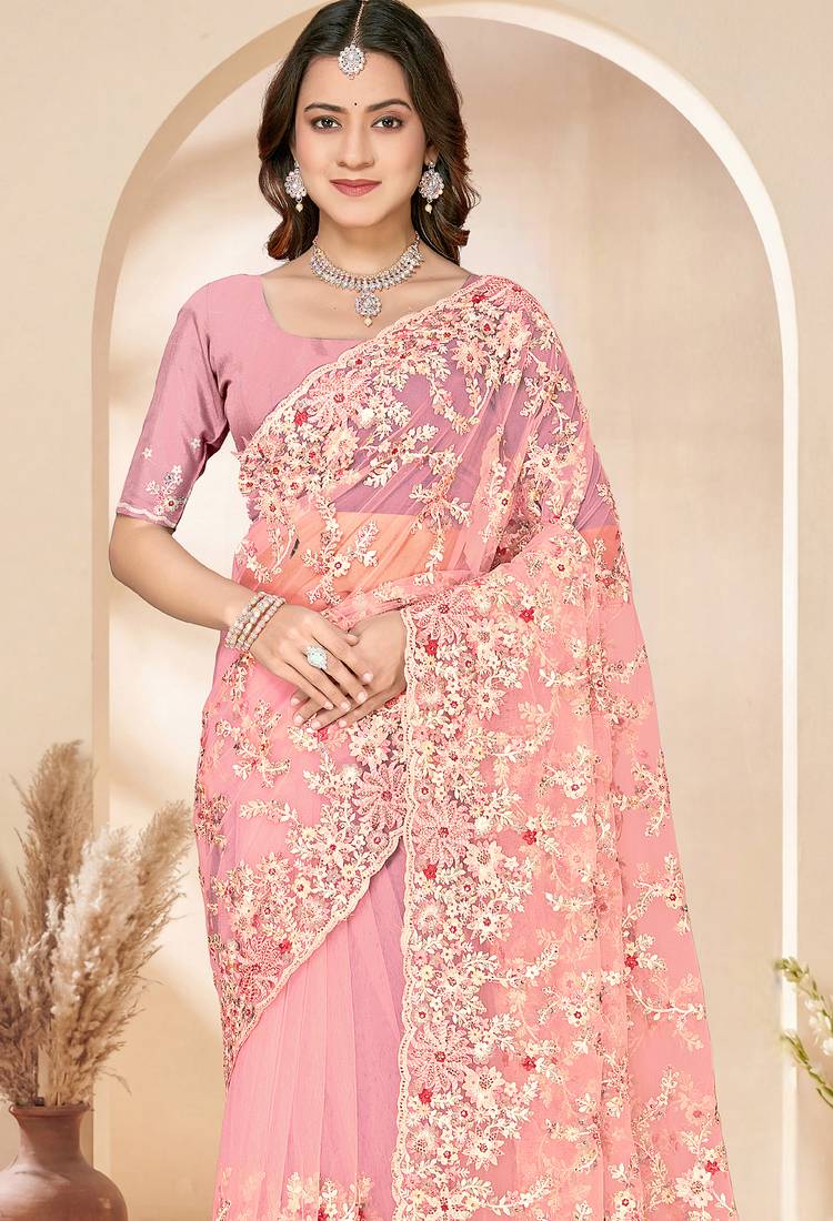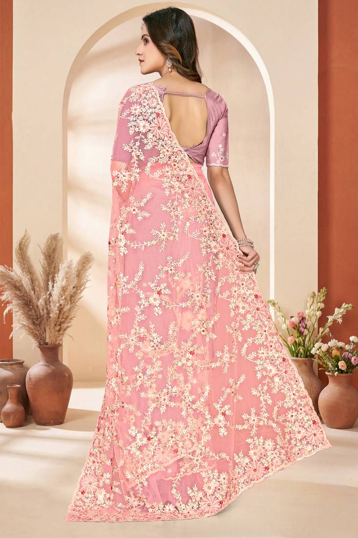 | Product Name | Peach Sequin Zari Resham Embroidery Work Net Saree Sari For Women | |