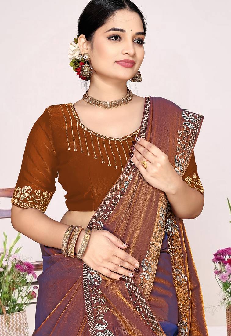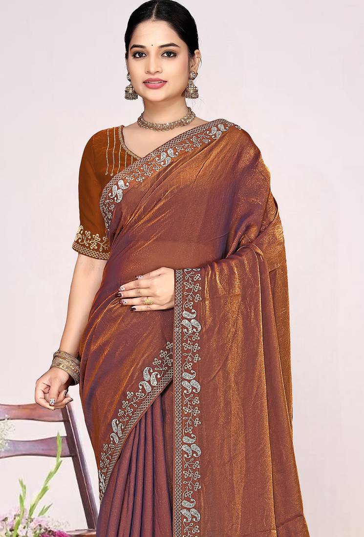 | Product Name | Rust Sequin Embellish Work Satin Silk Saree Sari For Women | |