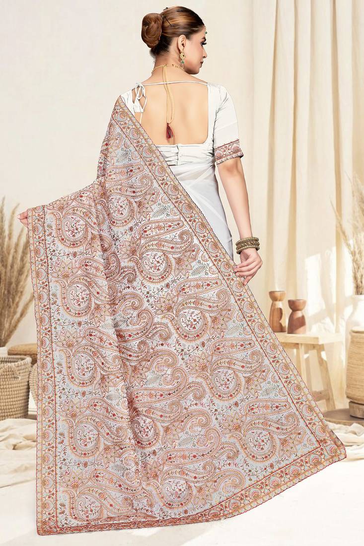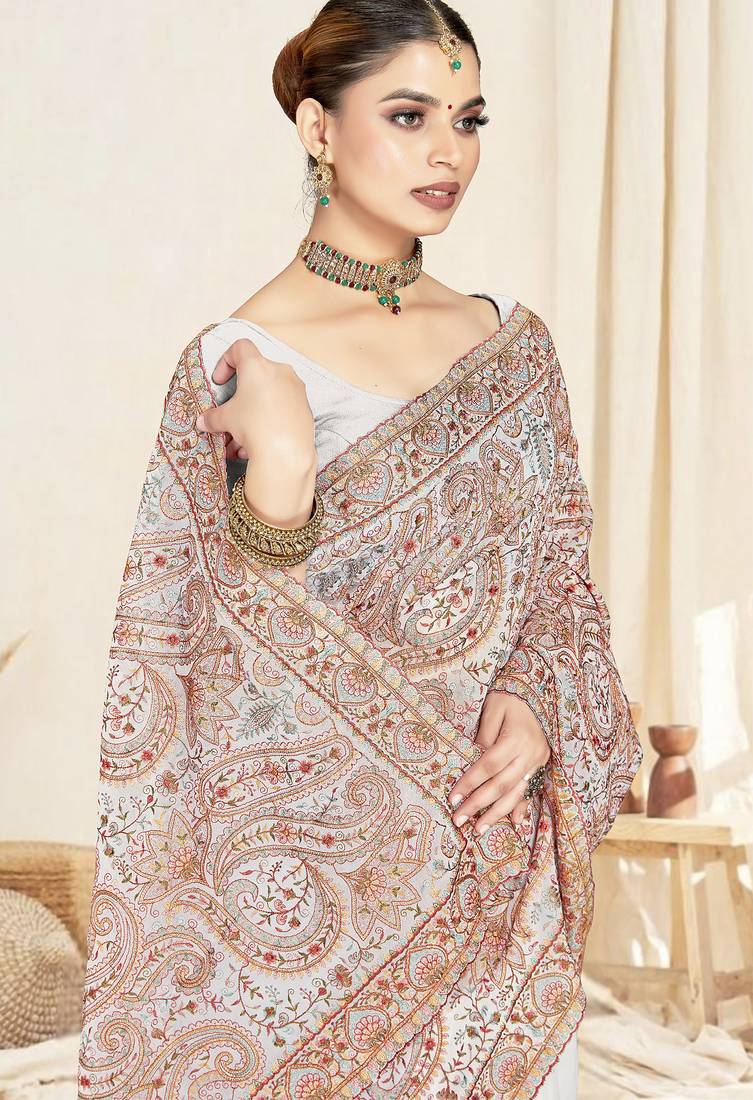 | Product Name | White Designer Saree With Kashmiri Resham Embroidery | |