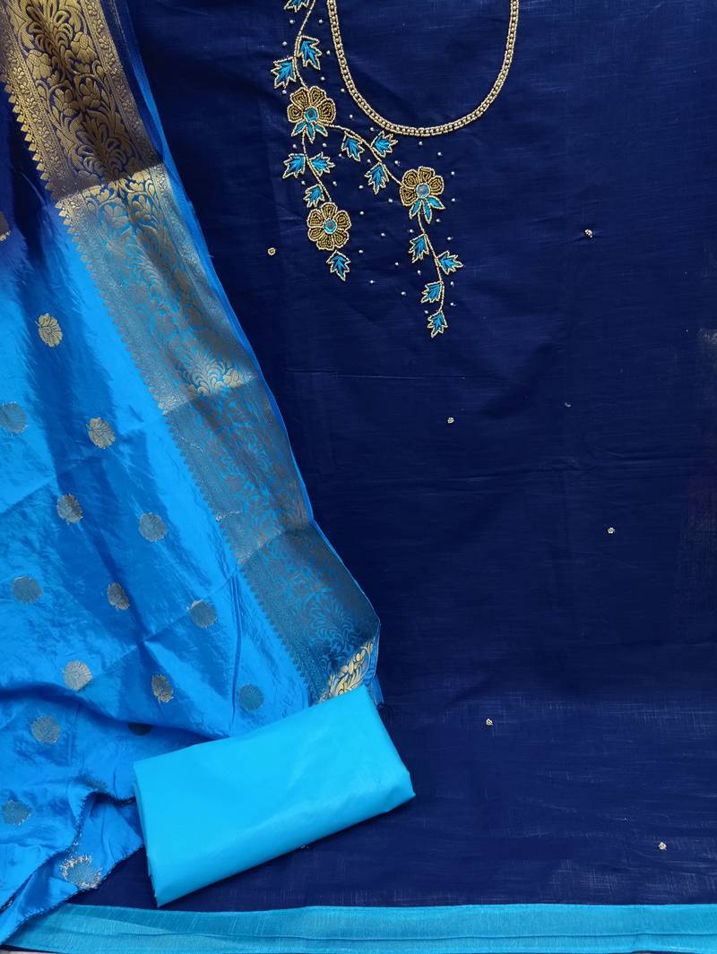 Blue embroidered cotton salwar unstitched