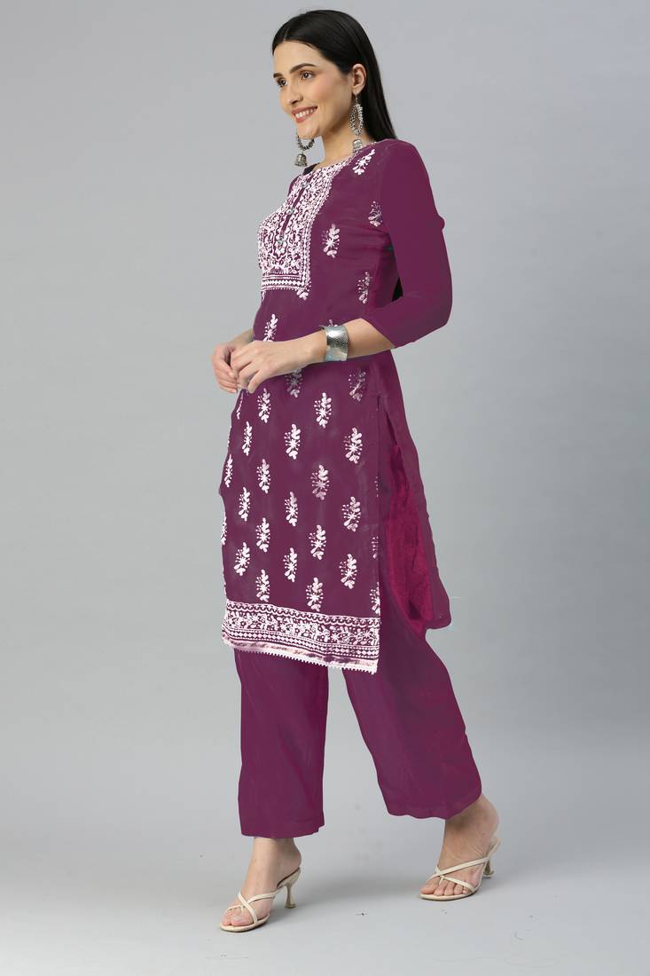 Women's Magenta Unstitched Heavy Thread Embrodiery With Embroidered Dupatta Organza Dress Material Having Magenta Color Bottom Of Santoon Fabric And Magenta Color Dupatta Of Organja Material With Designer Magenta Colour In Organja Santoon Fabric With Work Of Heavy Thread Embrodiery With Embroidered Dupatta|| Images Are For The Referance Purpose Only, Color Of The Actual Product May Little Vary From The Image Due To Screen Resolution