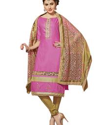Pink embroidered cotton salwar unstitched
