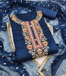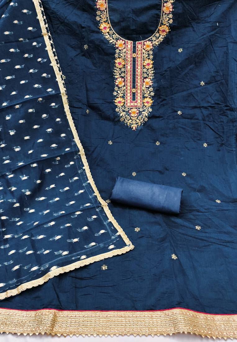blue embroidery chanderi cotton dress material unstitched