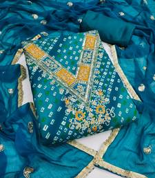 blue embroidery & print rayon dress material unstitched