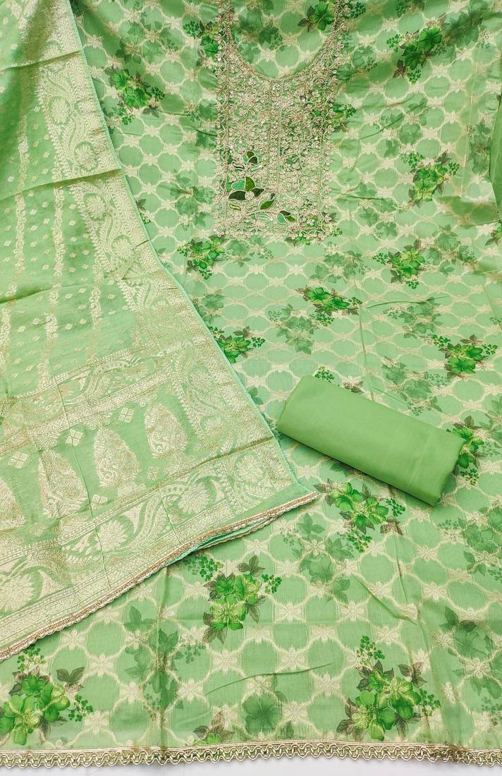 | Product Description | Women's Light Green Unstitched Digital Print Handwork Banarasi Modal Cotton Silk Dress Material Having Light Green Color Unstitched Bottom Of Dull Santoon Fabric And Light Green Color Dupatta Of Banarasi Jacquard Material With Amazing Light Green Colour In Banarasi Modal Cotton Silk Dull Santoon Banarasi Jacquard Fabric With Work Of Heavy Digital Print Handwork And Fancy Border With Designer Woven Dupatta|| Images Are For The Referance Purpose Only, Color Of The Actual Product May Little Vary From The Image Due To Screen Resolution |