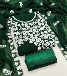 Women's green embroidery georgette dress material unstitched