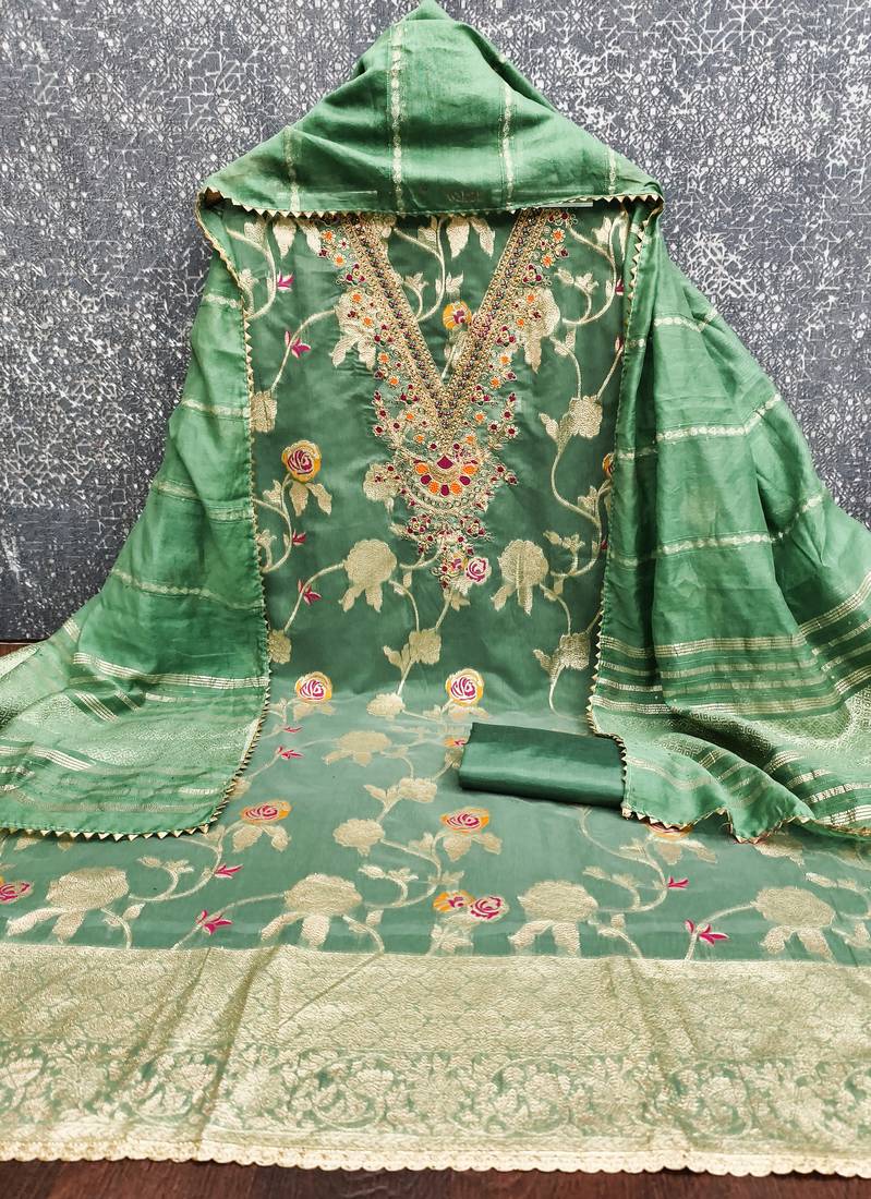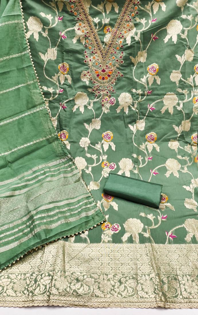 green embroidery,weaving jacquard dress material unstitched