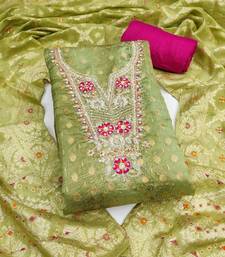 Women's green woven emblishment banarasi dress material unstitched