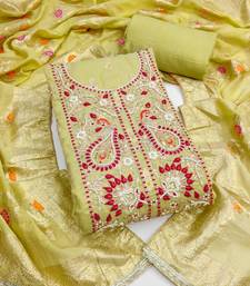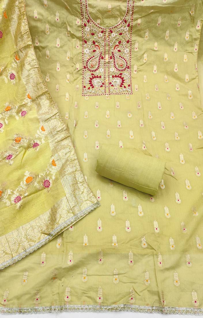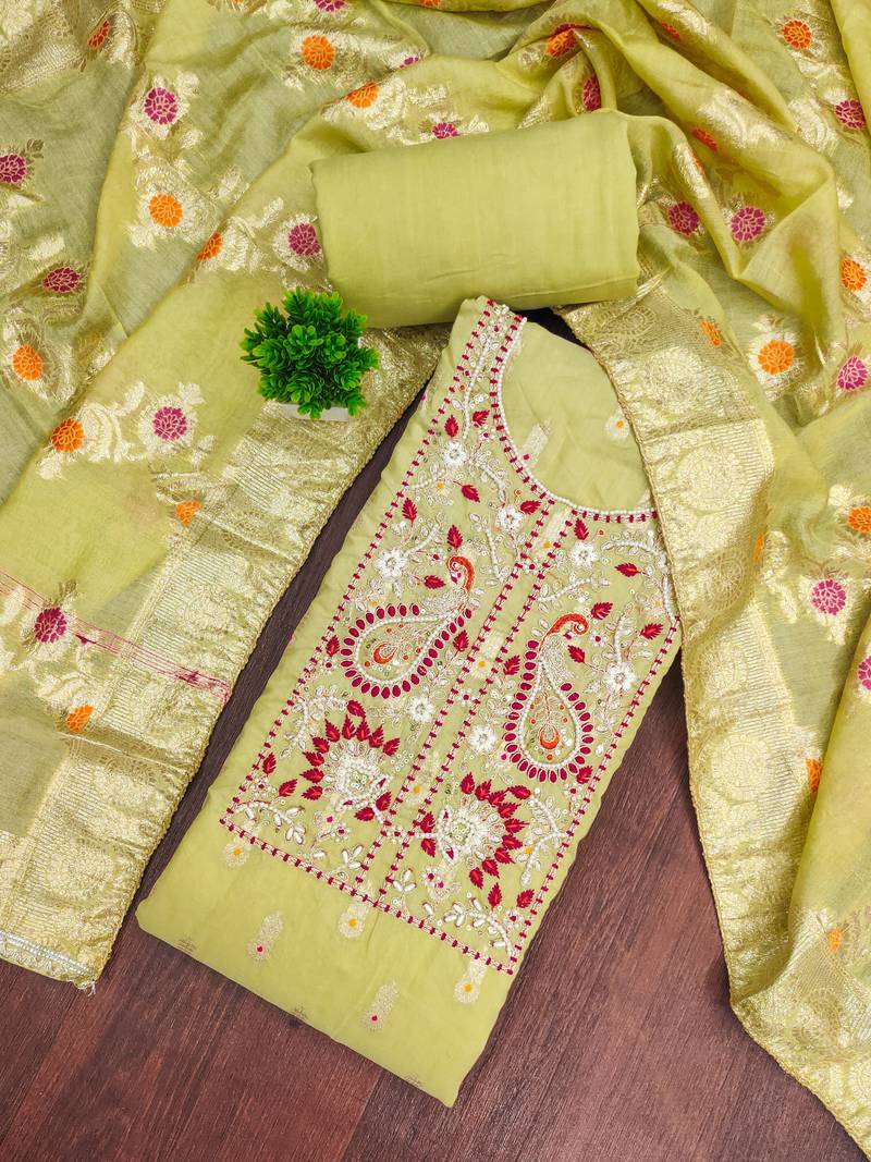 green woven handwork muslin dress material unstitched