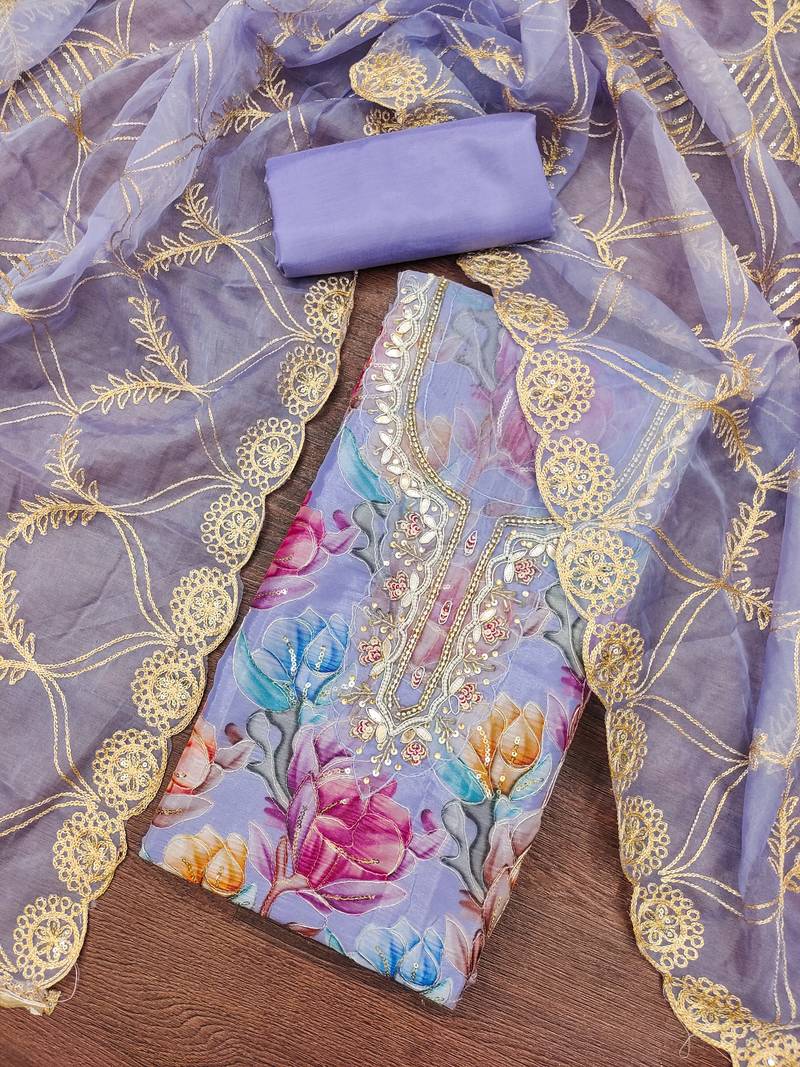 | Product Description | Women's Levender Unstitched Position Print Handwork Organja Dress Material Having Levender Color Unstitched Bottom Of Dull Santoon Fabric And Levender Color Dupatta Of Organja Material With Awesome Levender Colour In Organja Dull Santoon Fabric With Work Of Heavy Position Print Handwork And Fancy Border With Designer Embroiderd Dupatta|| Images Are For The Referance Purpose Only, Color Of The Actual Product May Little Vary From The Image Due To Screen Resolution |