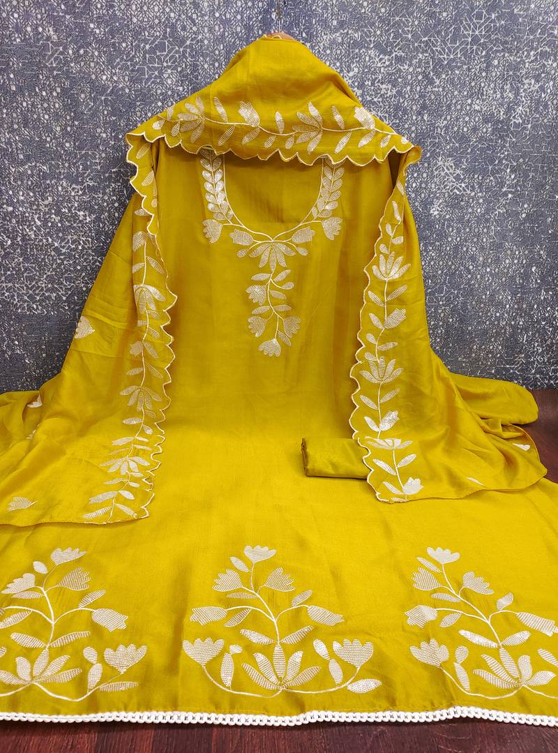 | Product Name | Women's Light Green Embroidery Vichitra Silk Dress Material | |