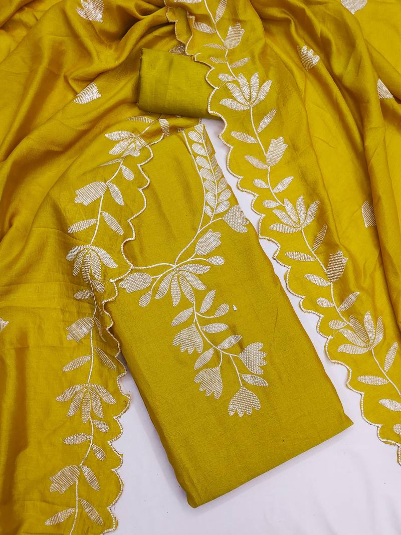Women's light green embroidery vichitra silk dress material unstitched