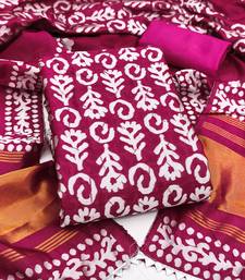 Women's magenta woven print silk dress material unstitched