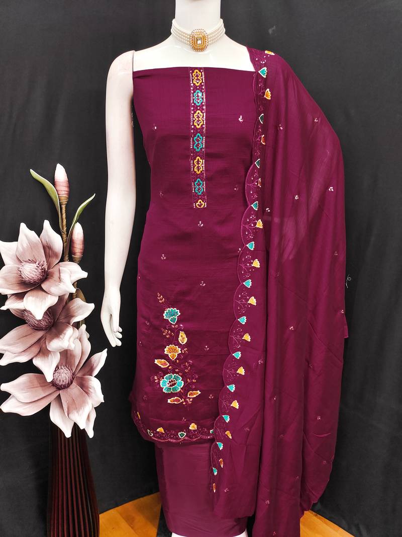 | Product Name | Women's Maroon Embrodiery Silk Dress Material | |