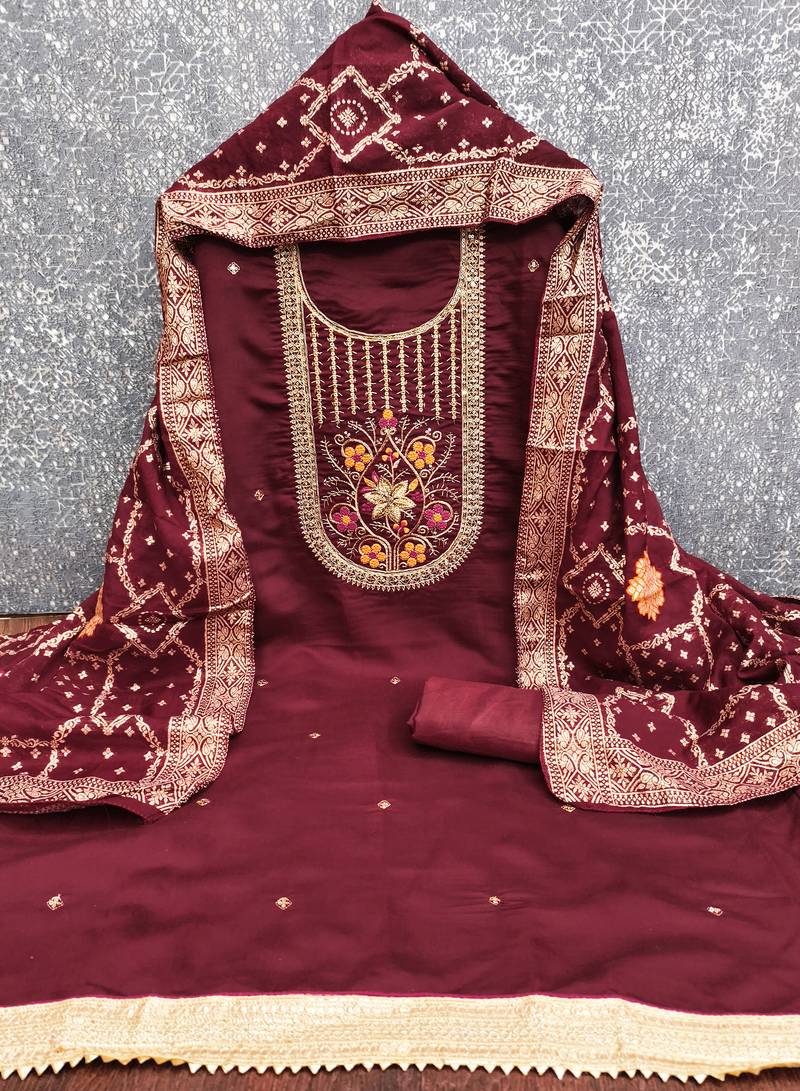 | Product Name | Maroon Embroidery Roman Silk Dress Material | |