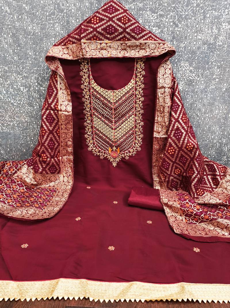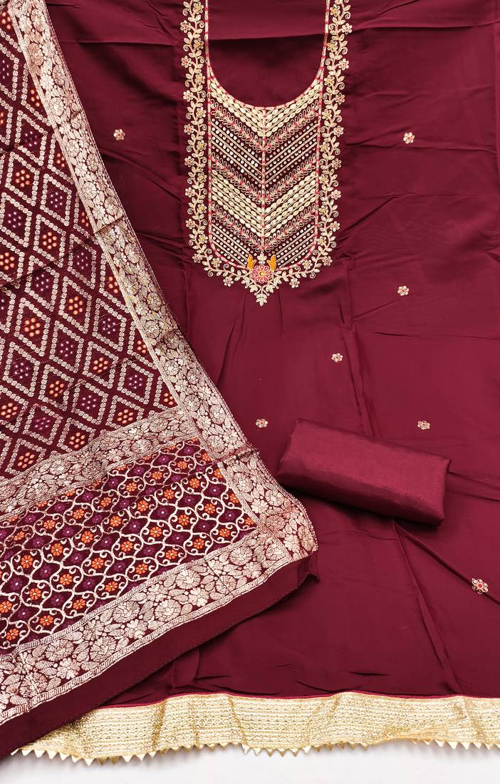 | Product Name | Maroon Embroidery Roman Silk Dress Material | |