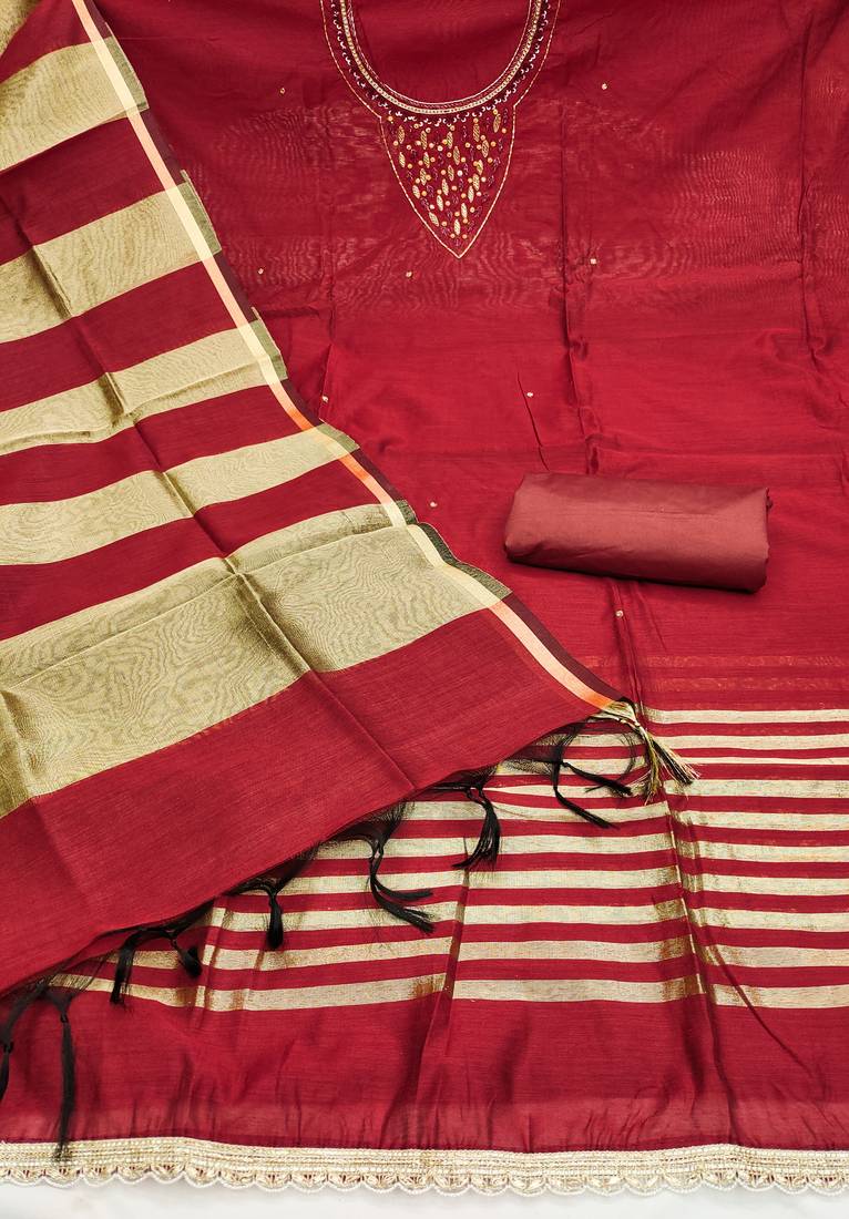 | Product Name | Women's Maroon Hand Work Chanderi Dress Material | |