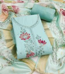 Mint green embroidered cotton silk unstitched dress material