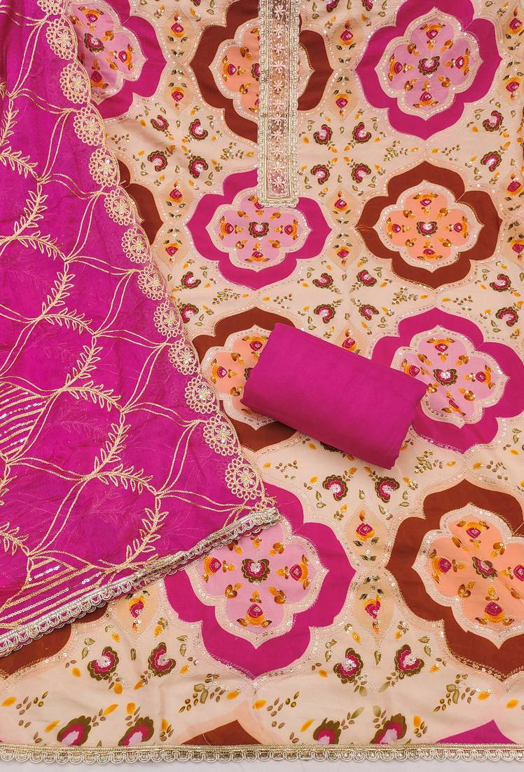 | Product Description | Women's Multi Unstitched Heavy Embroidery And Fancy Border Viscose Cotton Silk Dress Material Having Pink Color Unstitched Bottom Of Rayon Fabric And Pink Color Dupatta Of Nazneen Material With Amazing Multi Colour In Viscose Cotton Silk Rayon Nazneen Fabric With Work Of Heavy Embroidery And Fancy Border With Deisgner Embroidered Dupatta|| Images Are For The Referance Purpose Only, Color Of The Actual Product May Little Vary From The Image Due To Screen Resolution |