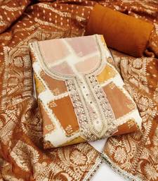 Product Name Mustard Cotton Silk Unstitched Handwork Dress Material