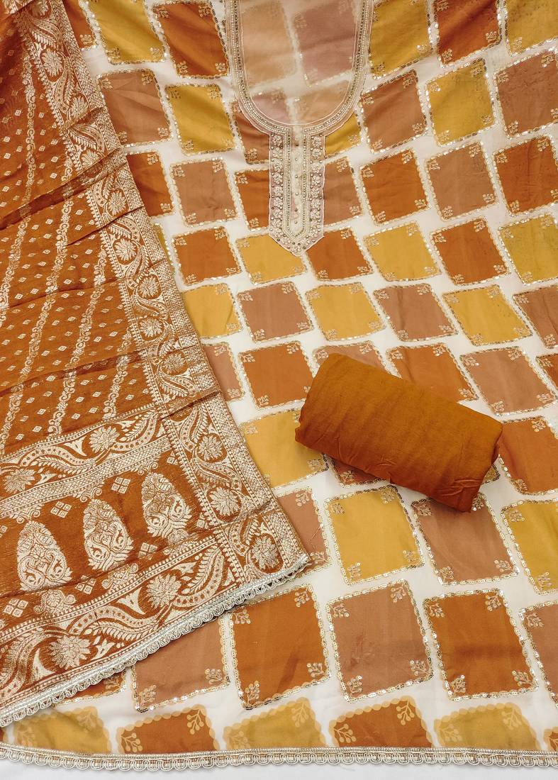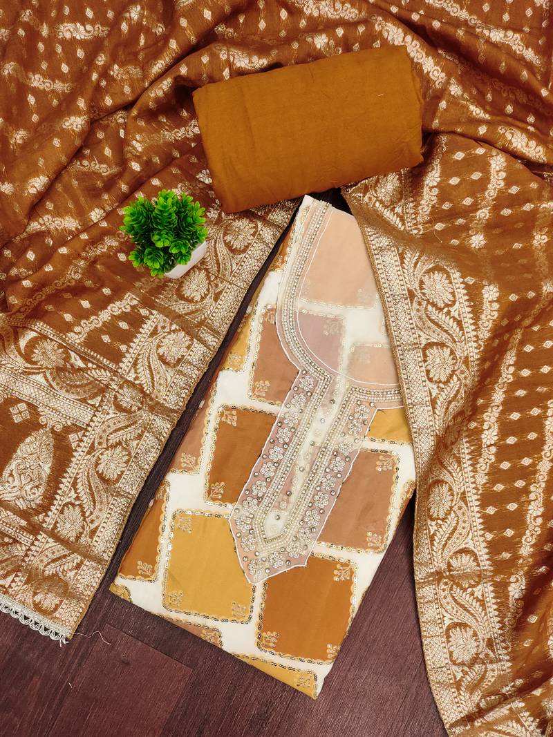 Add A Touch Of Elegance To Your Ethnic Collection With This Women’s Mustard Unstitched Salwar Kameez Dress Material, Beautifully Crafted In Pure Cotton Silk Fabric. Designed With Heavy Handwork Embroidery And An Attractive Fancy Border, This Outfit Reflects Timeless Craftsmanship And Festive Charm. The Set Includes A Mustard Unstitched Bottom In Soft Rayon Fabric For Enhanced Comfort And A Rich Banarasi Dupatta Featuring Designer Woven Detailing That Elevates The Overall Look. The Harmonious Blend Of Cotton Silk And Banarasi Fabric Offers Both Luxury And Breathability. Perfect For Festive Occasions, Traditional Functions, And Celebrations, This Dress Material Allows You To Customize The Stitching To Suit Your Personal Style And Fit.