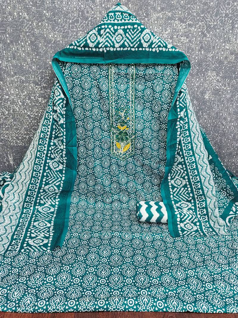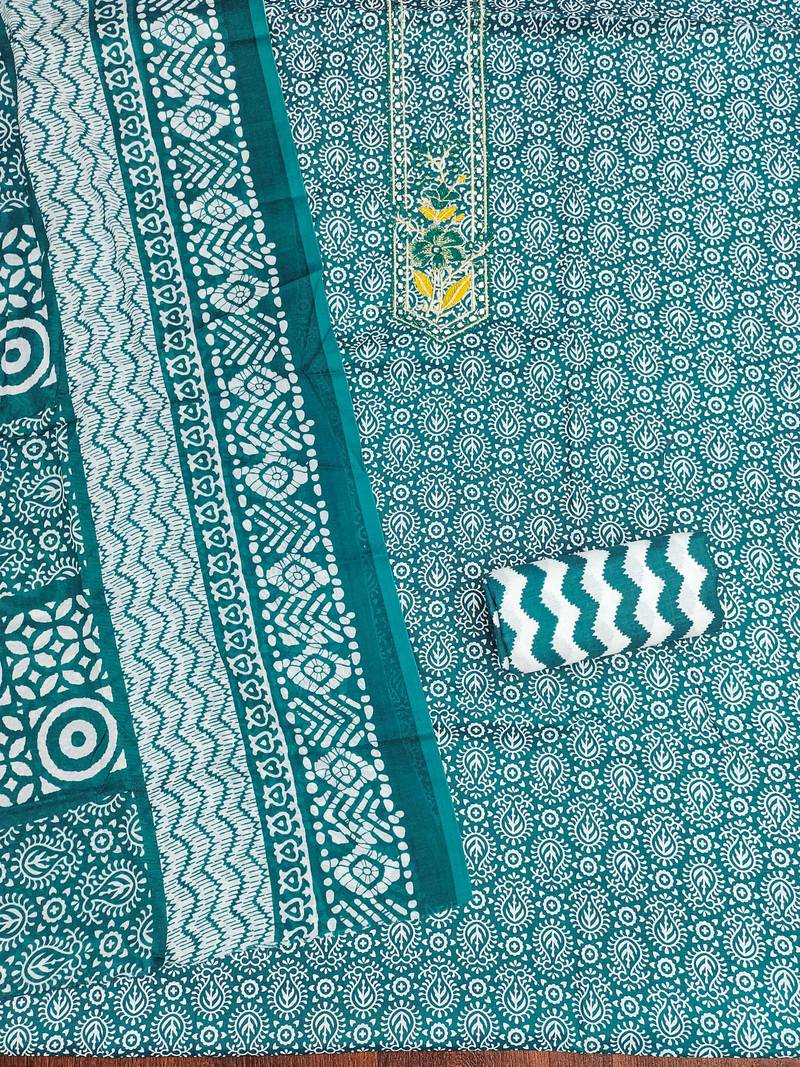 | Product Name | Sea Green Printed Cotton Dress Material With Embroidered Neck | |