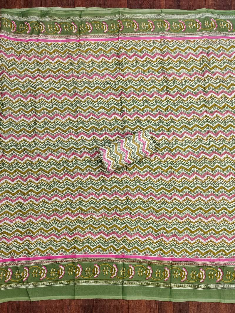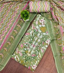 Green multicolor printed cotton dress material unstitched