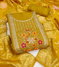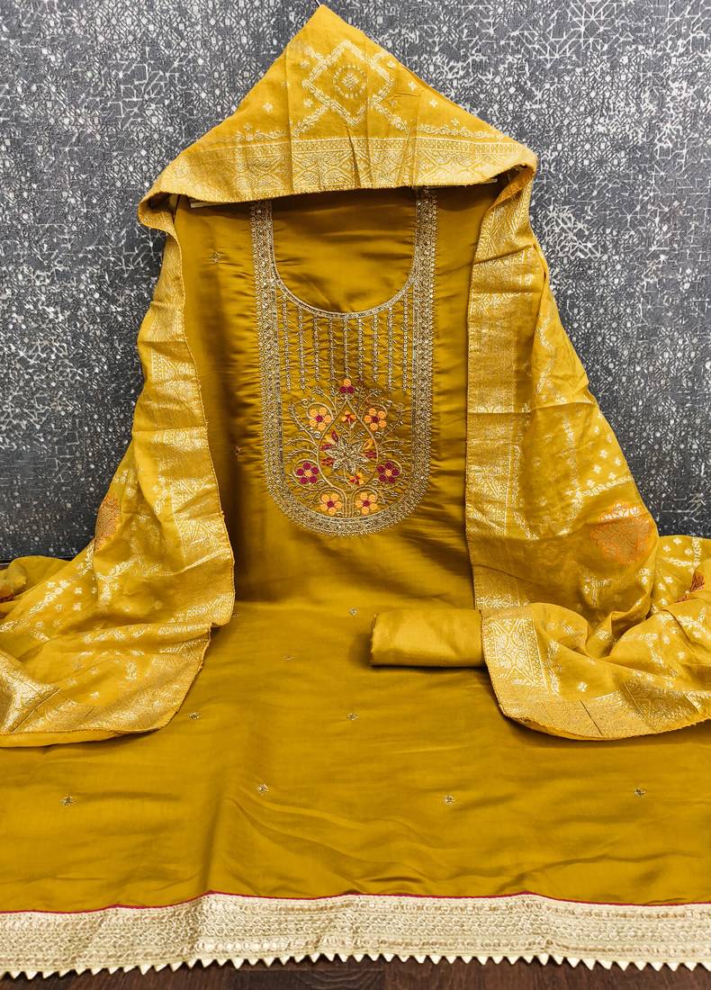 mustard embroidery roman silk dress material unstitched
